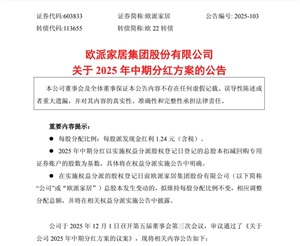 12月1日,欧派家居发布公告,披露了2025年中期分红方案的详细...