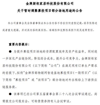2月10日,金牌家居科技股份有限公司发布公告称,为提升募投项...